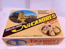 Los Nicanores son un exquisito hojaldre cuya principal materia prima es la mantequilla. Después de una muy cuidada manipulación se convierten en un hojaldre de extraordinaria calidad, puesto que la finura de sus capas los hacen tan frágiles que prácticamente se disuelven en la boca de la misma forma que lo haría la propia mantequilla.