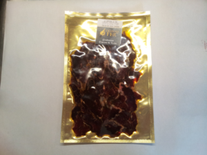 Cecina de oveja en trozos envasada al vacío. Cecina de oveja loncheada envasada al vacío.