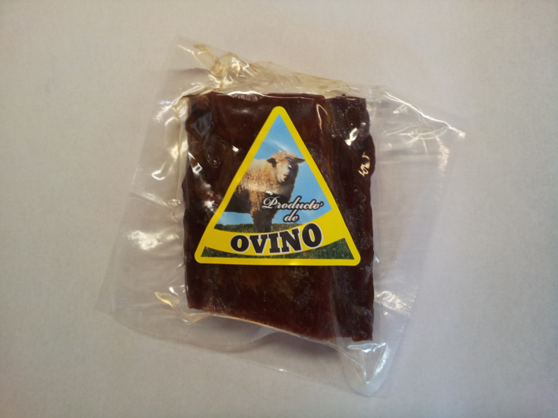 Cecina de oveja en trozos envasada al vacío. Cecina de oveja loncheada envasada al vacío.